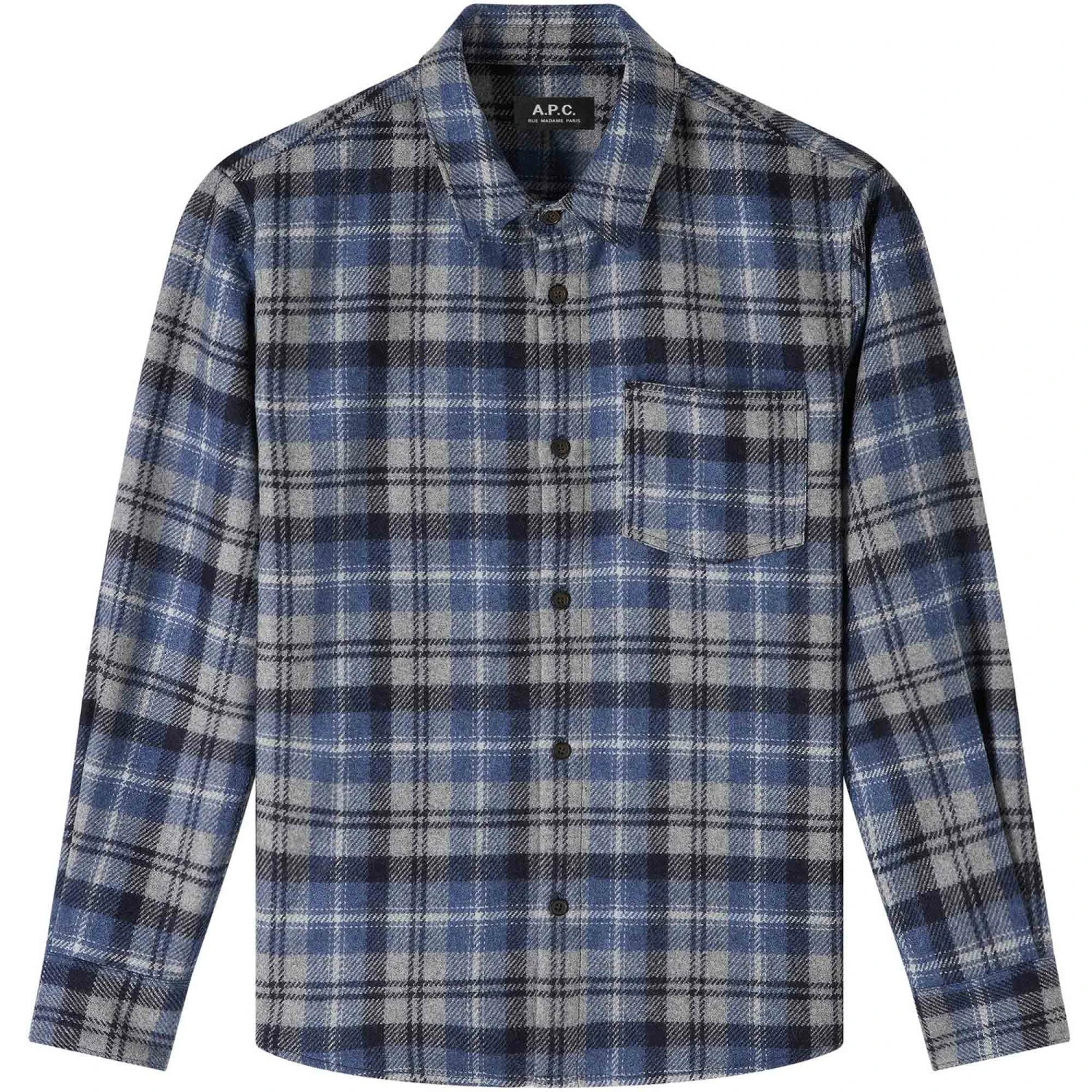 A.P.C. designed this New Valerian Overshirt crafted from wool and polyamide blend and features long sleeves, an all over tartan design, buttoned cuffs and is complete with a classic chest pocket.