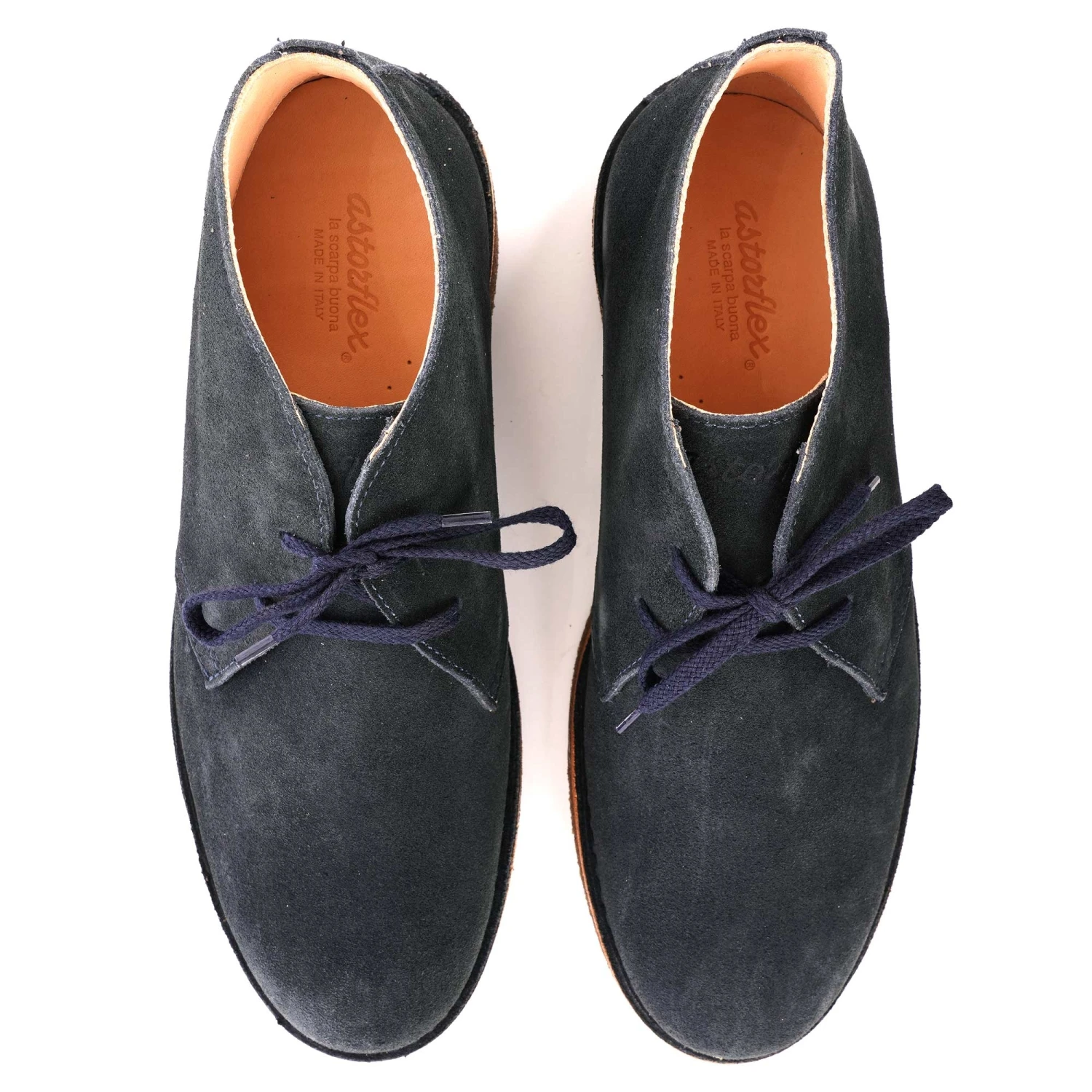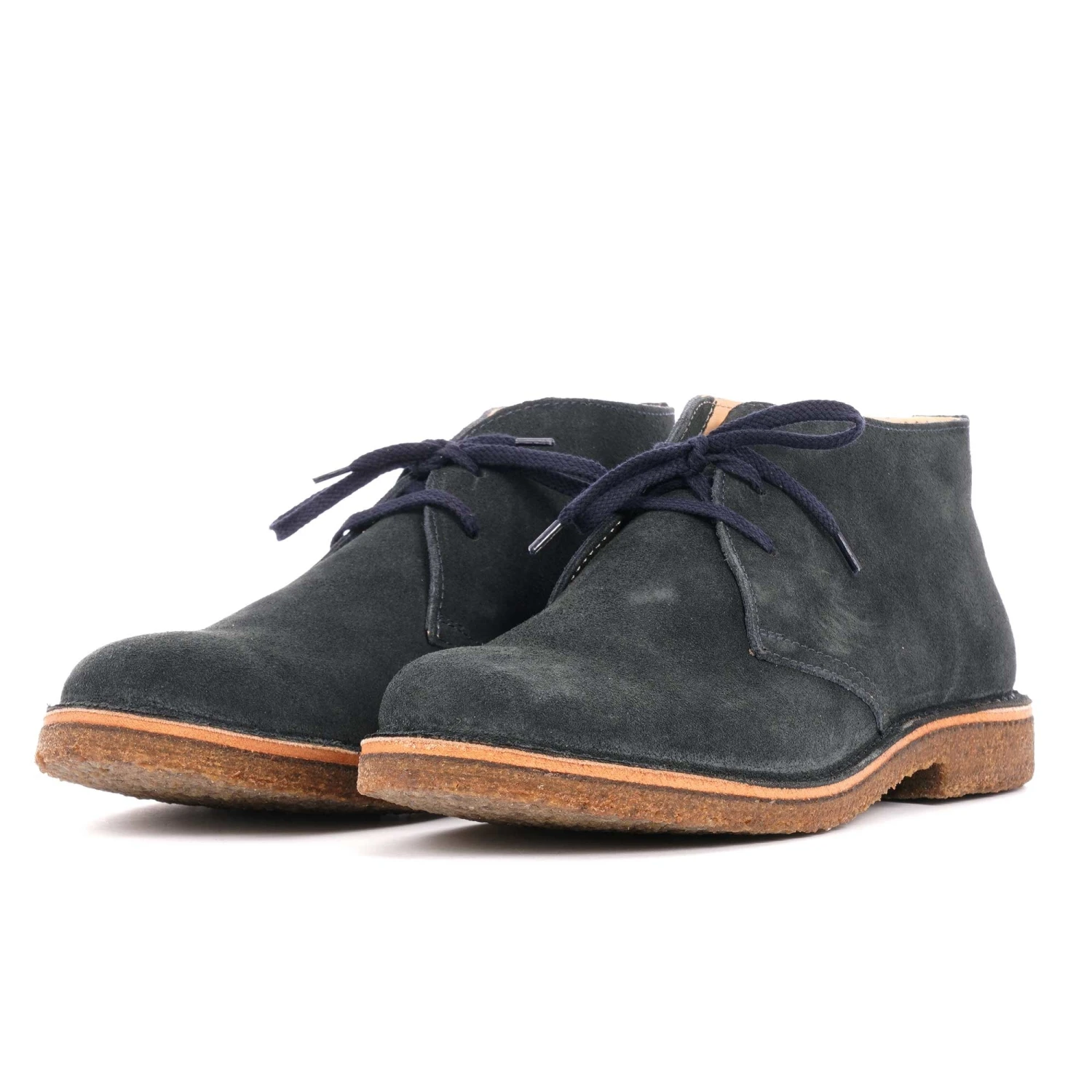 This Dark Navy Greenflex model of the classic Astorflex boot is a high-quality Italian take of the original Desert Boot first created for the British Army in Cairo. The Greenflex model includes a central seam for a rugged look, soft suede uppers with a leather lining, memory foam footbed and a traditional crepe sole.