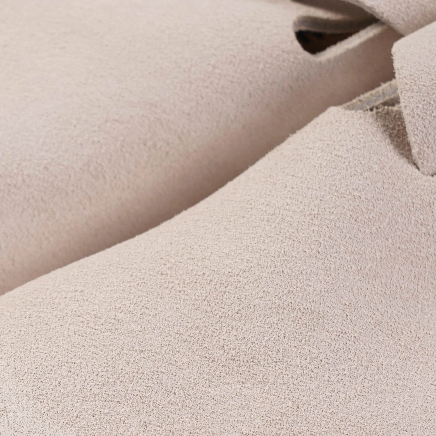 The Birkenstock Boston clog is a veritable classic that can easily be worn all year round. The colour-coordinated buckles with a textile feel and a matte design as well as the colour-coordinated outsole are additional eye-catchers. The upper is made from soft suede.