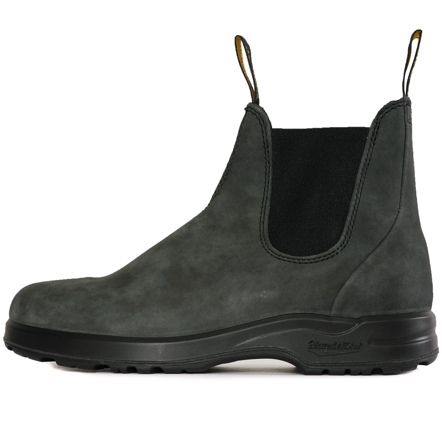 Blundstone heart, Vibram sole. The #2056 Rustic Black is seriously rugged. Water-resistant, premium leather uppers keep feet dry, while the rubber Vibram sole brings extra cushioning and even more durability, traction and support. Blundstone’s fit-for-purpose Chelsea boots go to the next level.