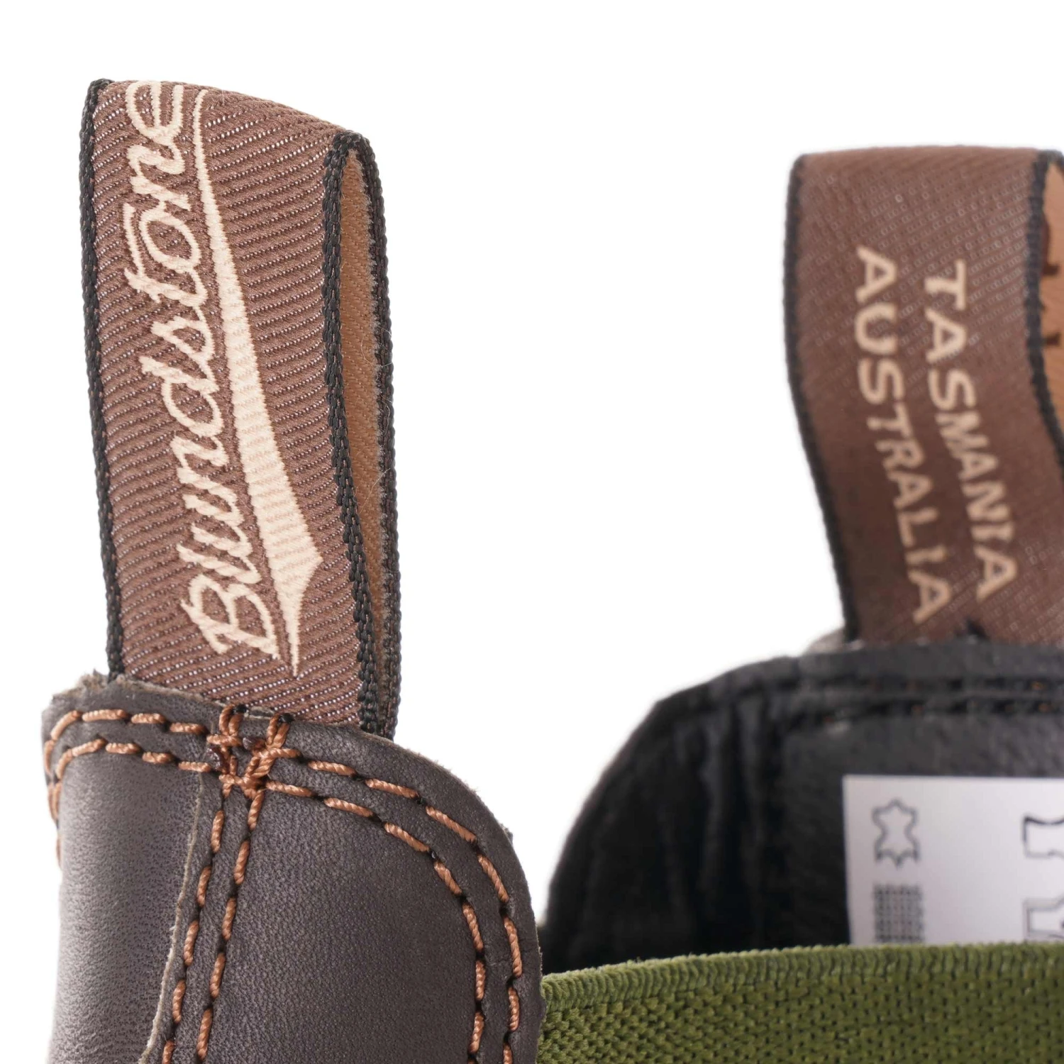 The #519 distinctive olive green elastic side panels are set against dark brown leather uppers. The anatomically shaped PU midsole is designed for comfort, while the TPU outsoles are hard-wearing and provide stability. The removable and replaceable EVA footbeds add extra comfort. The #519 combines Blundstone practicality with contemporary looks.