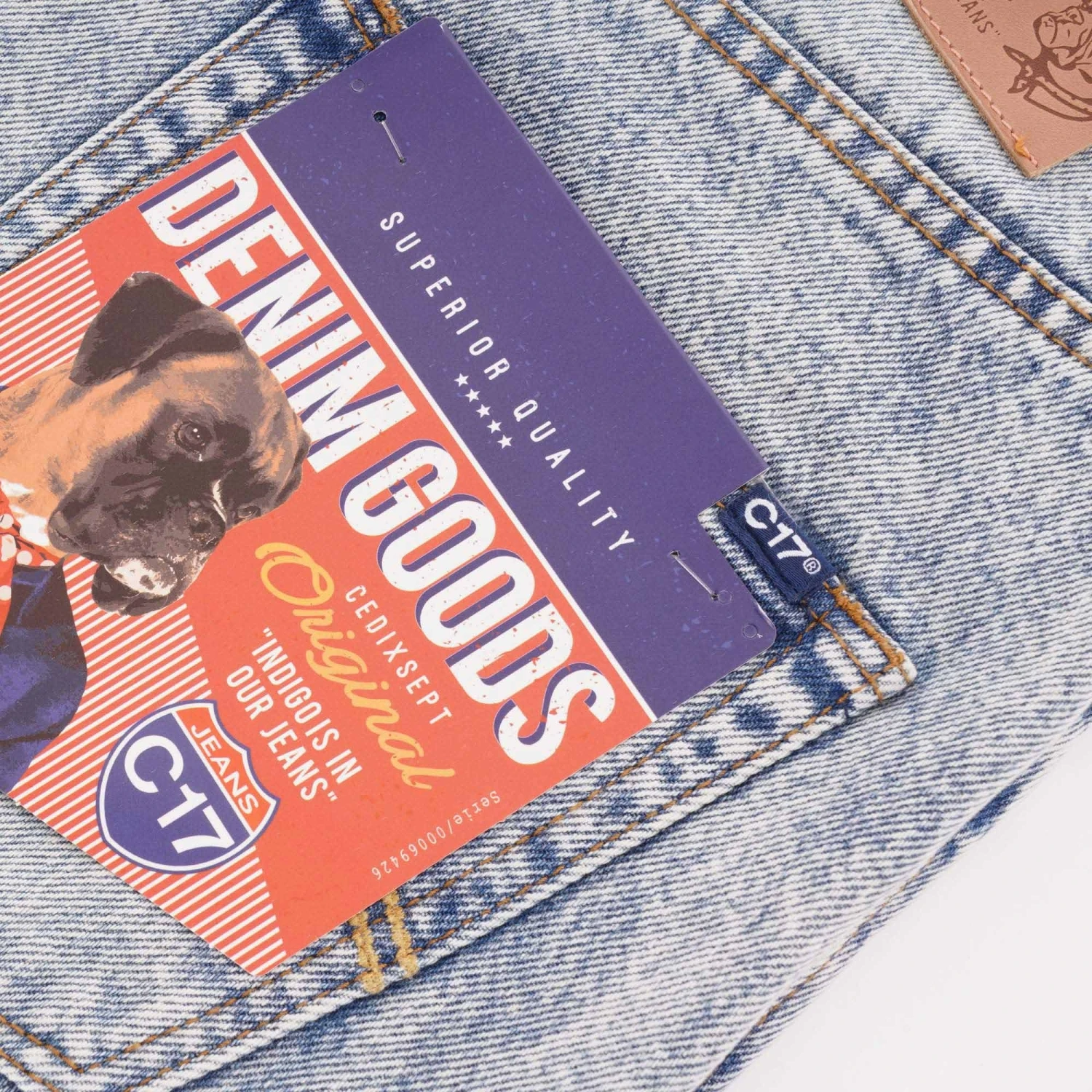 - C17 blue tab on back pocketÂ
