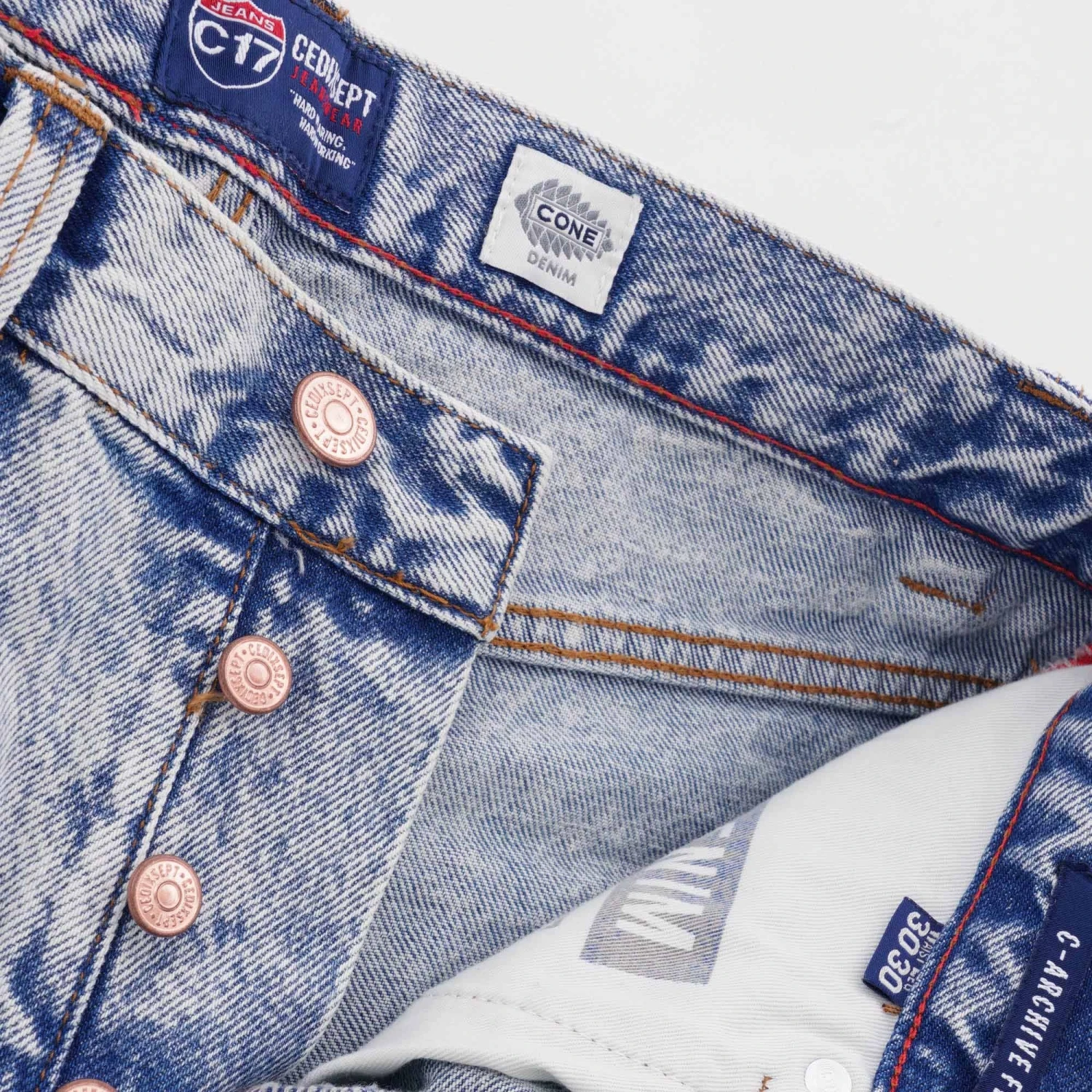 Going back to their roots, where it all started. C17 Jeans see the release of their new line of classic workwear denim. Each piece expertly crafted with care and attention to produce jeans that are built to last. Made from Cone Denim Mills, these jeans boast a rich denim heritage and know-how. Each pair feature a classic 5-pocket design with C17 Jeans branded leather patch and C17 blue tab on the back pocket. Fitted with copper buttons and copper rivets and reinforced belt loops, these jeans have all the classic workwear details that set them apart in terms of quality and design. The jeans are designed for everyday use and with comfort in mind while maintaining their timeless look and feel.Â