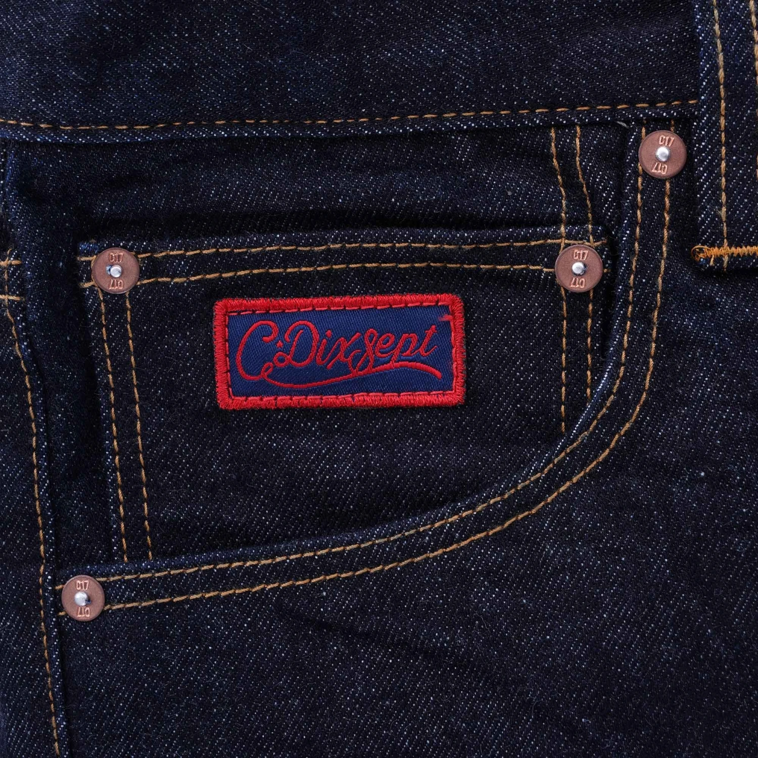 - C17 Jeans ‘Cedixsept’ embroidered patch on front coin pocket