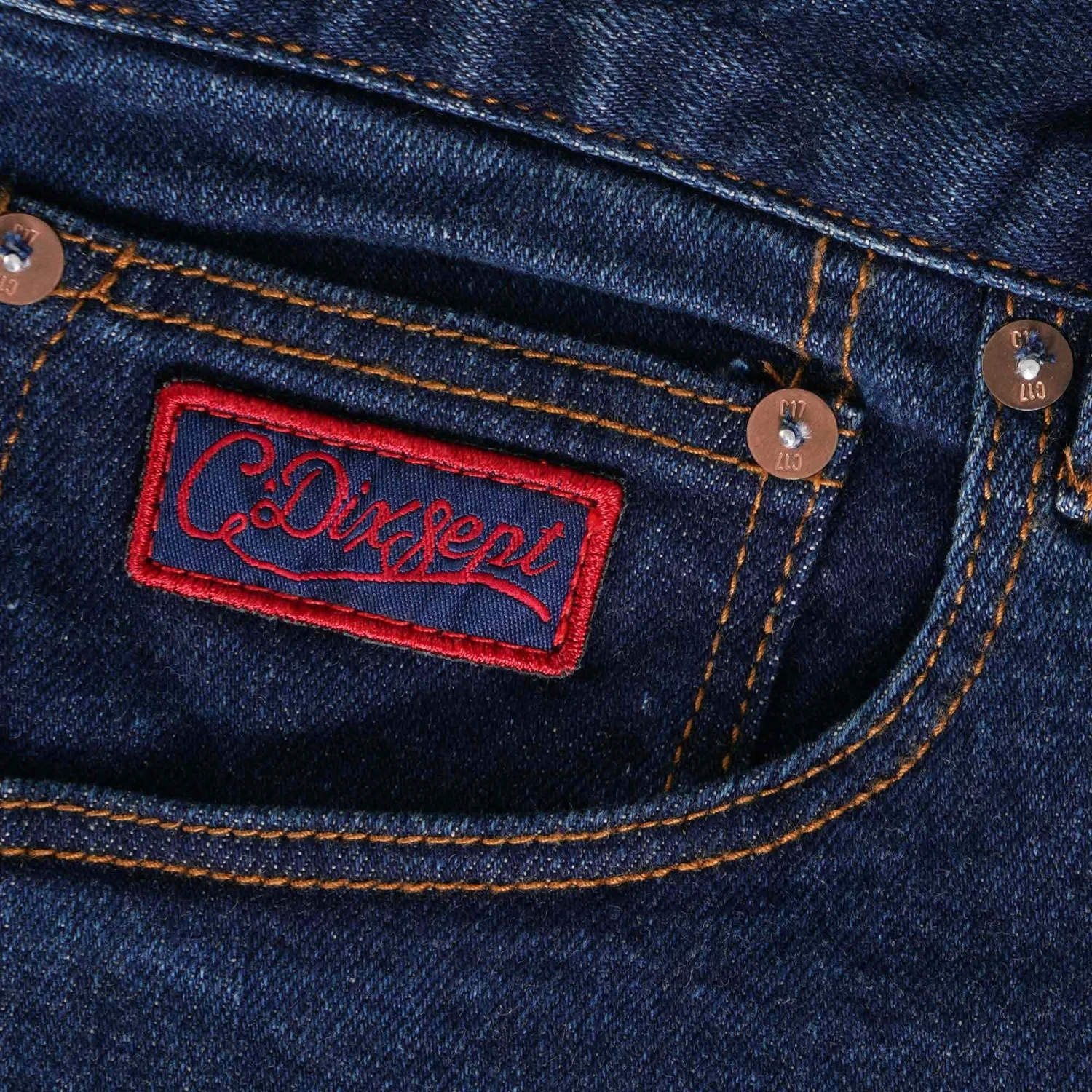 Made from 13oz selvedge denim, these jeans are essential for all seasons. Crafted from a cotton and spandex blend these jeans feature a five-pocket design, with contrasting stitching, a zip and button closure and are complete with a Cedixsept badge on the coin pocket. Loose Fit.