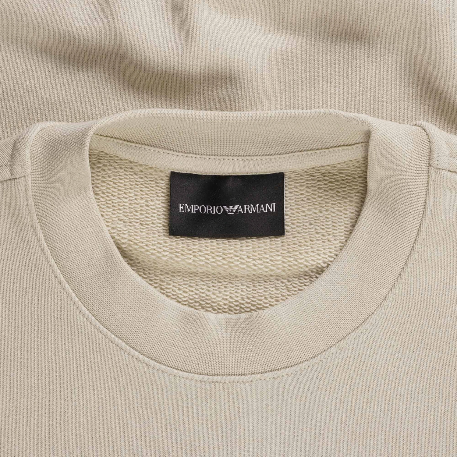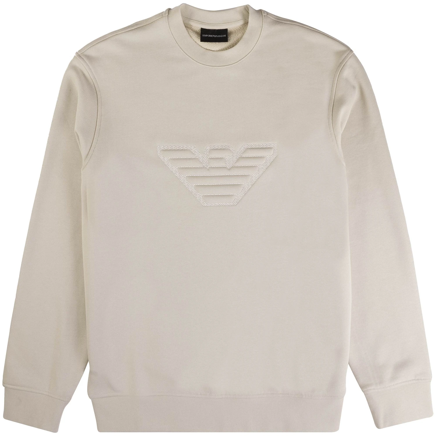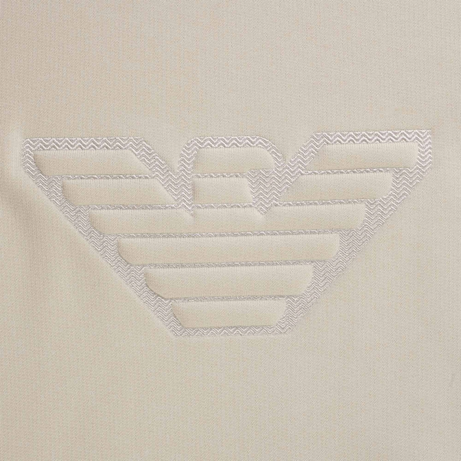 Crew-neck sweatshirt in heavyweight cotton jersey, featuring an oversized front logo with domed embossing on a chevron jacquard knit background. The Emporio Armani logo is a constant of undeniable style, whether it’s shown off, displayed or just hinted at.