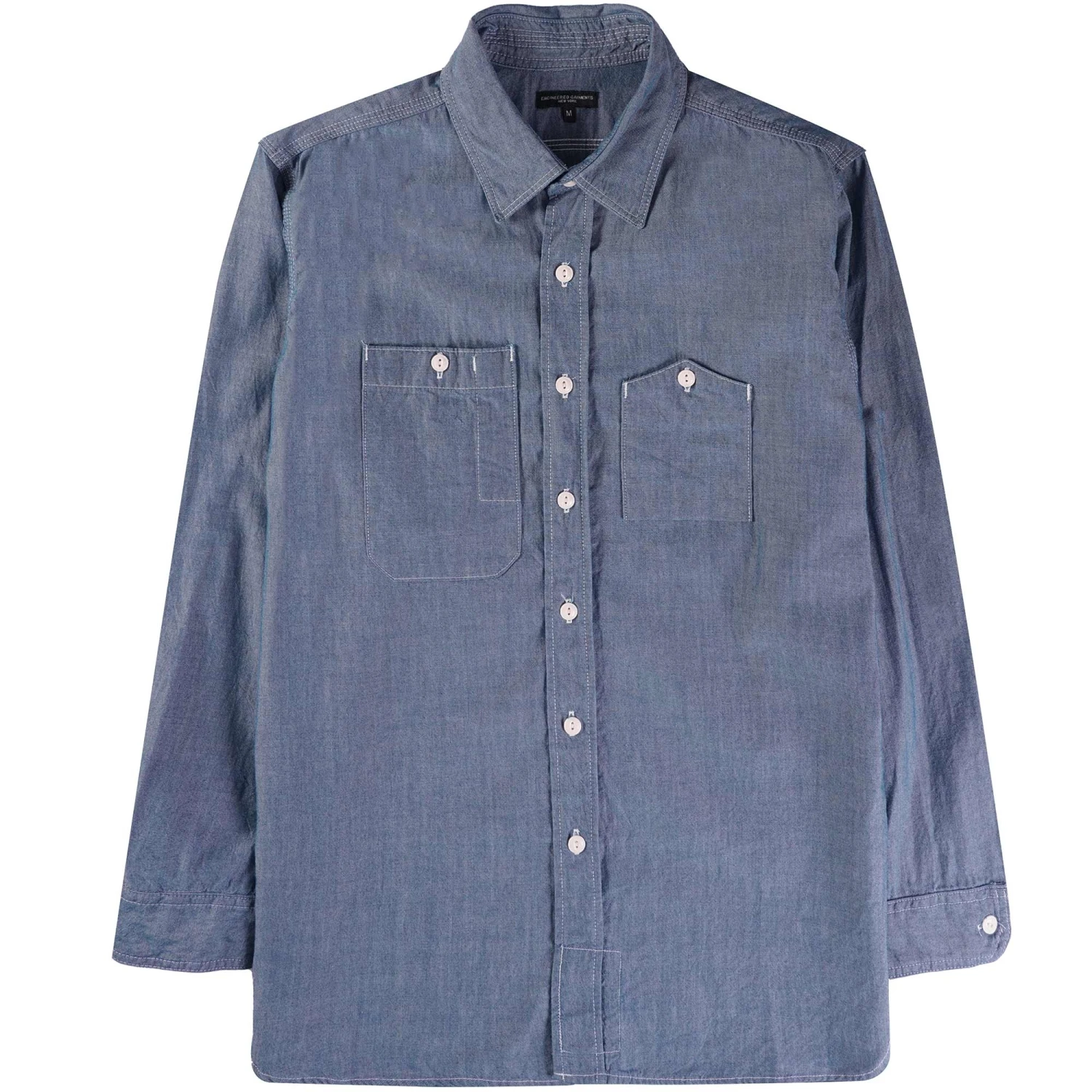 Engineered Garments, a menswear company based in New York, draws inspiration from classic workwear for their Work Shirt. The fabric is cotton chambray, which is considered to be one of the most durable utility textiles. The Work Shirt has reinforced elbows and cat-eye button accents.