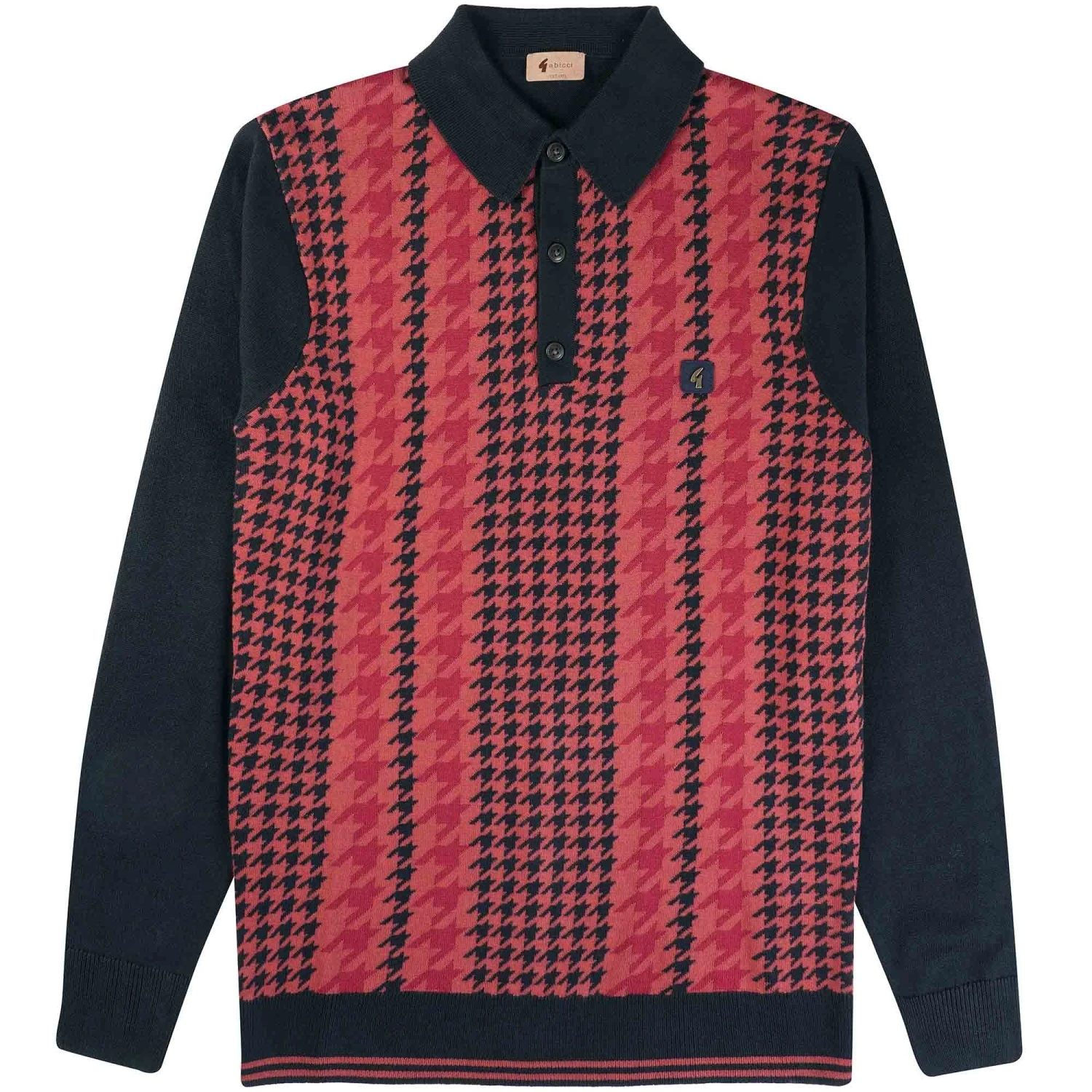 The Gabicci Filmar Long Sleeve Polo Shirt has elastic cuffs and a hem and a three-button placket with brand-name buttons. The Gabicci logo provides the last touch on this polo.