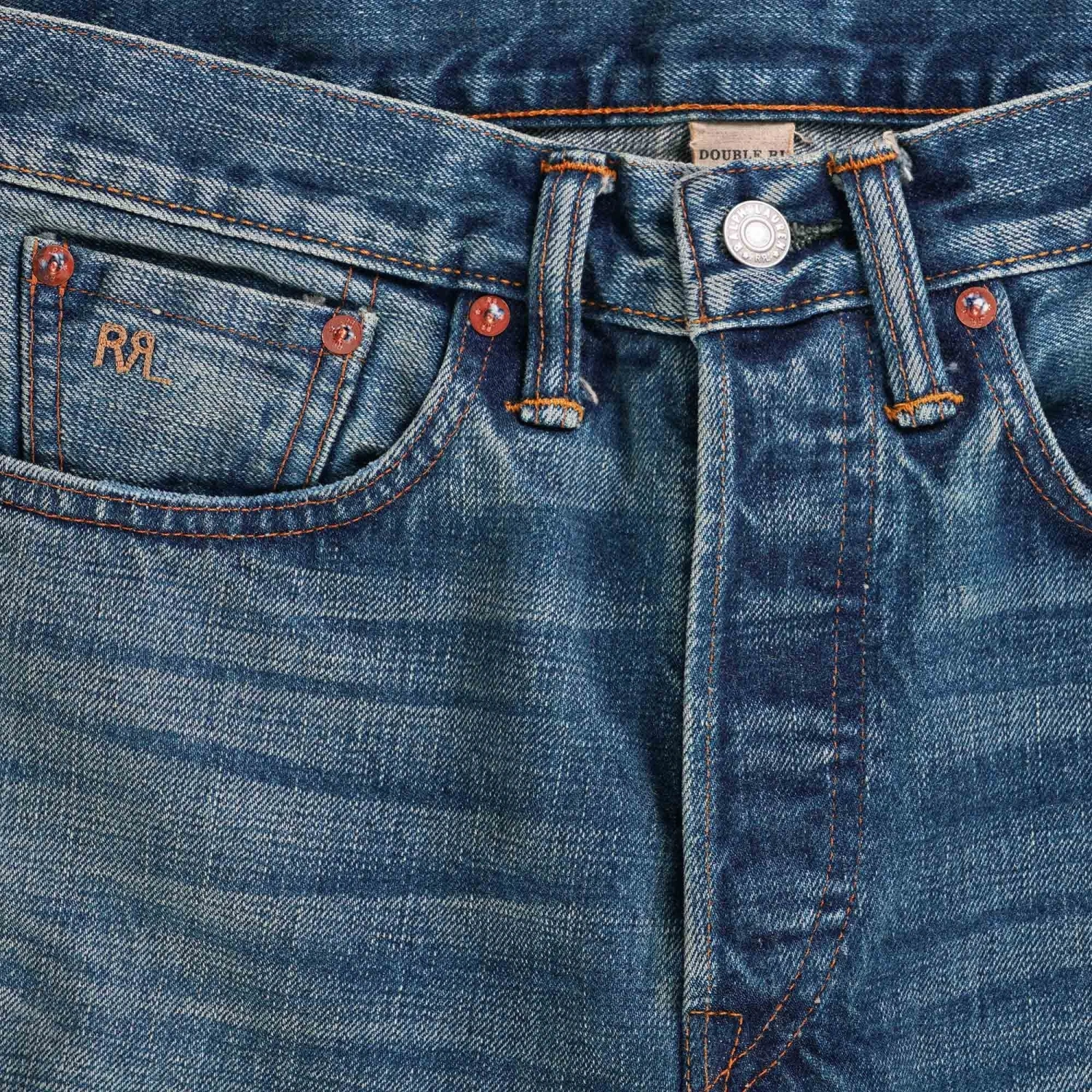 - “RRL” embroidery at the selvedge coin pocket