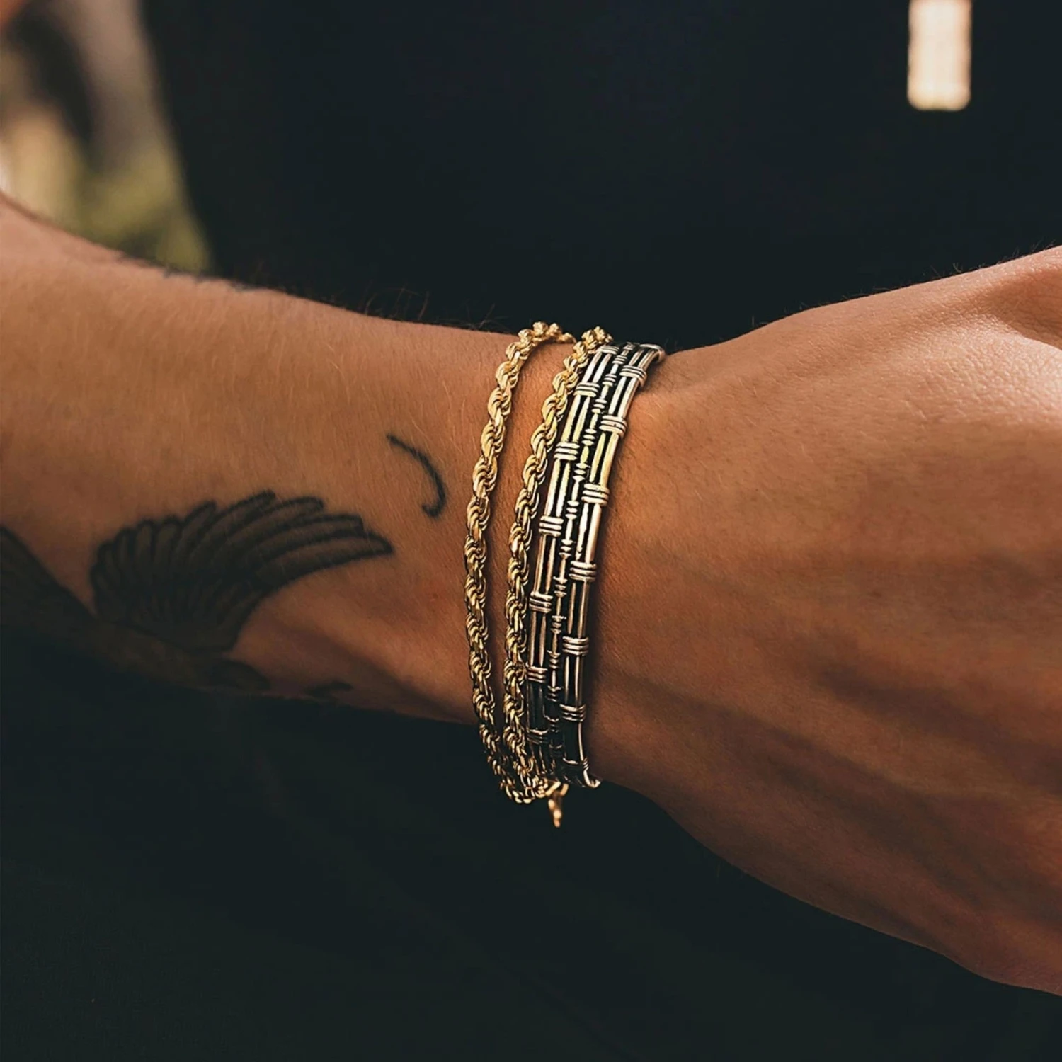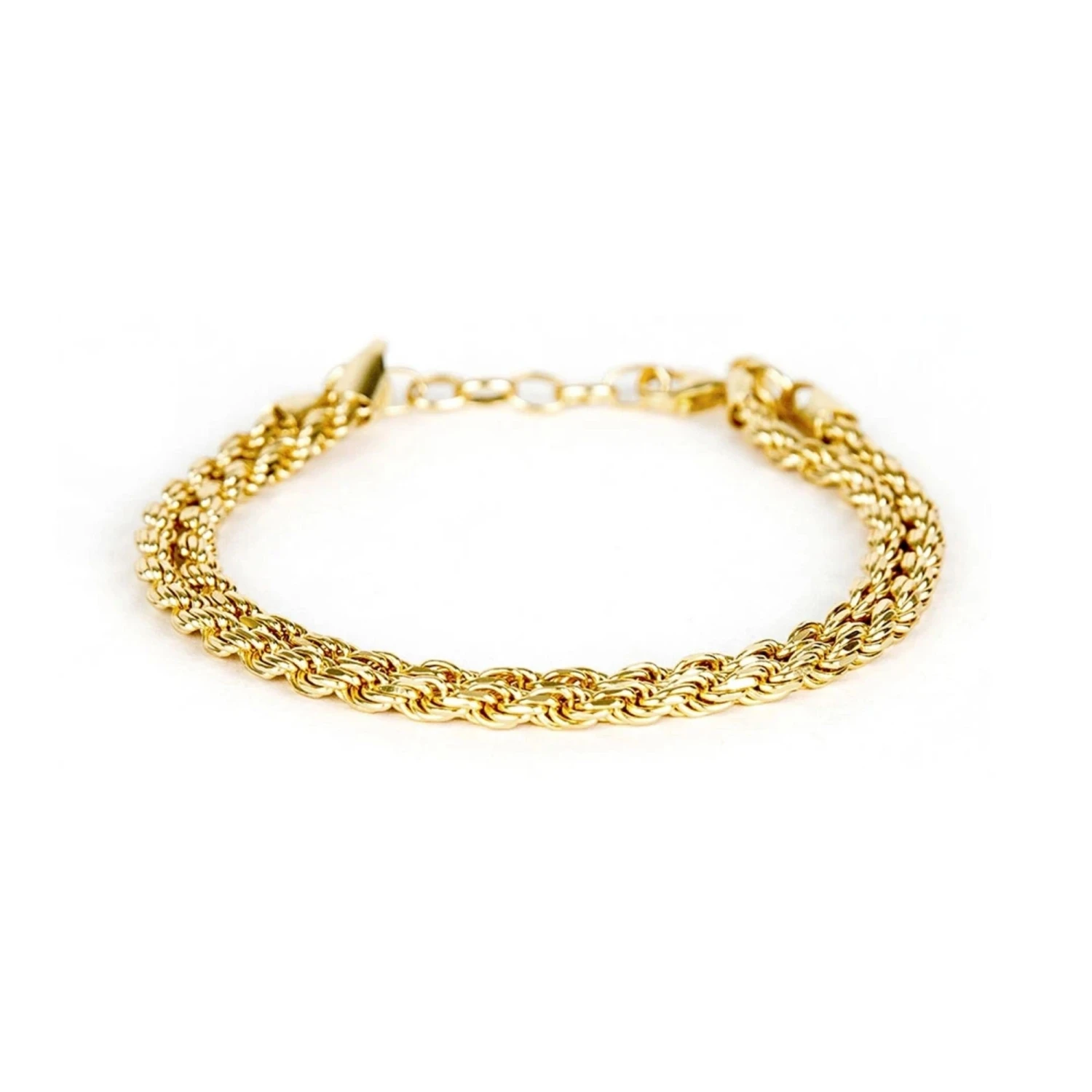 The Bracelet features a duo rope design that allows for a double-layered gold bracelet. The Bracelet itself is manufactured of the highest quality Sterling Silver that is Hallmarked by the Assay Office with our own unique Hallmark. This can be identified globally by any trusted jewellers and the registration mark can be traced online. The Bracelet has 14KT Gold Plating for a premium finish. The Bracelet is 17cm with 0.5cm increments up to 20cm max circumference. The necklace features a rope design that has 10 small links woven into a rope-like repeat pattern. This is kept doubled up with a small lobster clasp and 0.5cm increment.
