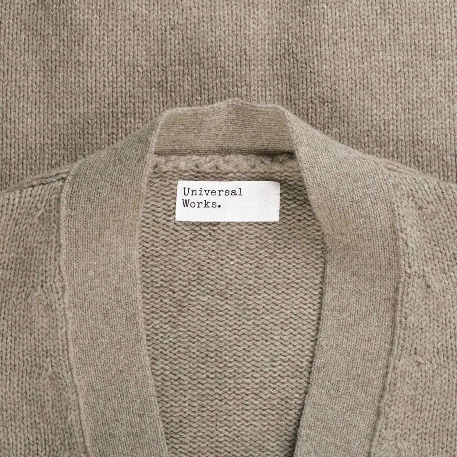 The oatmeal colour of the Universal Works Langdale Cardigan has a soft, cosy feel, and its timeless style guarantees that it will be a cherished staple for many years. The Langdale Cardigan is simple and stylish, with a regular fit that ensures maximum comfort and ease of wear. This button-front cardigan has a classic style with ribbed cuffs and hem as well as contrast detailing and is made of 81% wool, 15% polyamide, and 4% other fibres.