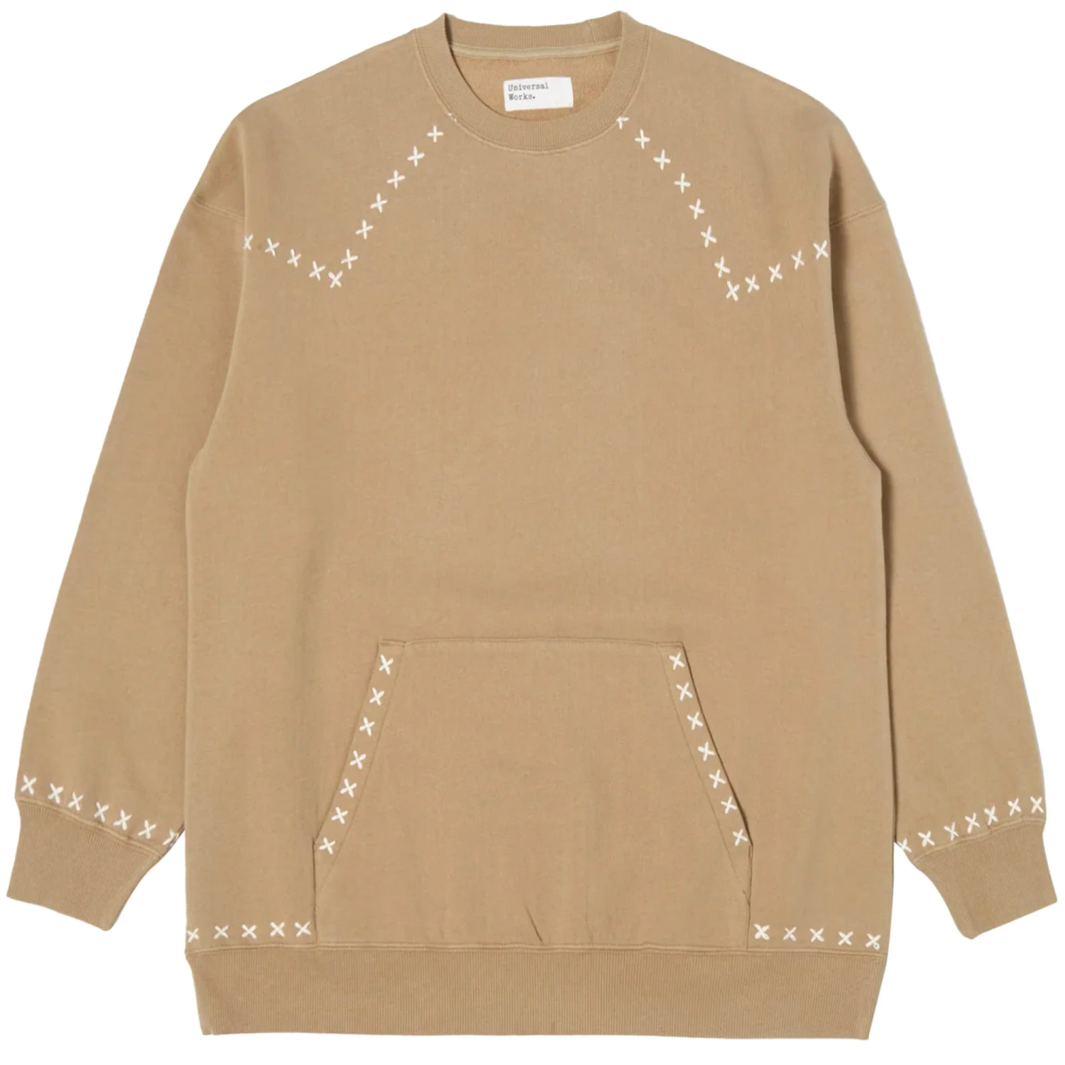 A loose-fitting crew neck with a classic ribbed collar, cuffs, and hem. Large kangaroo pocket. 100% cotton, 360g fleece knit fabric with a brushed back. For a super soft, winter-ready feel.