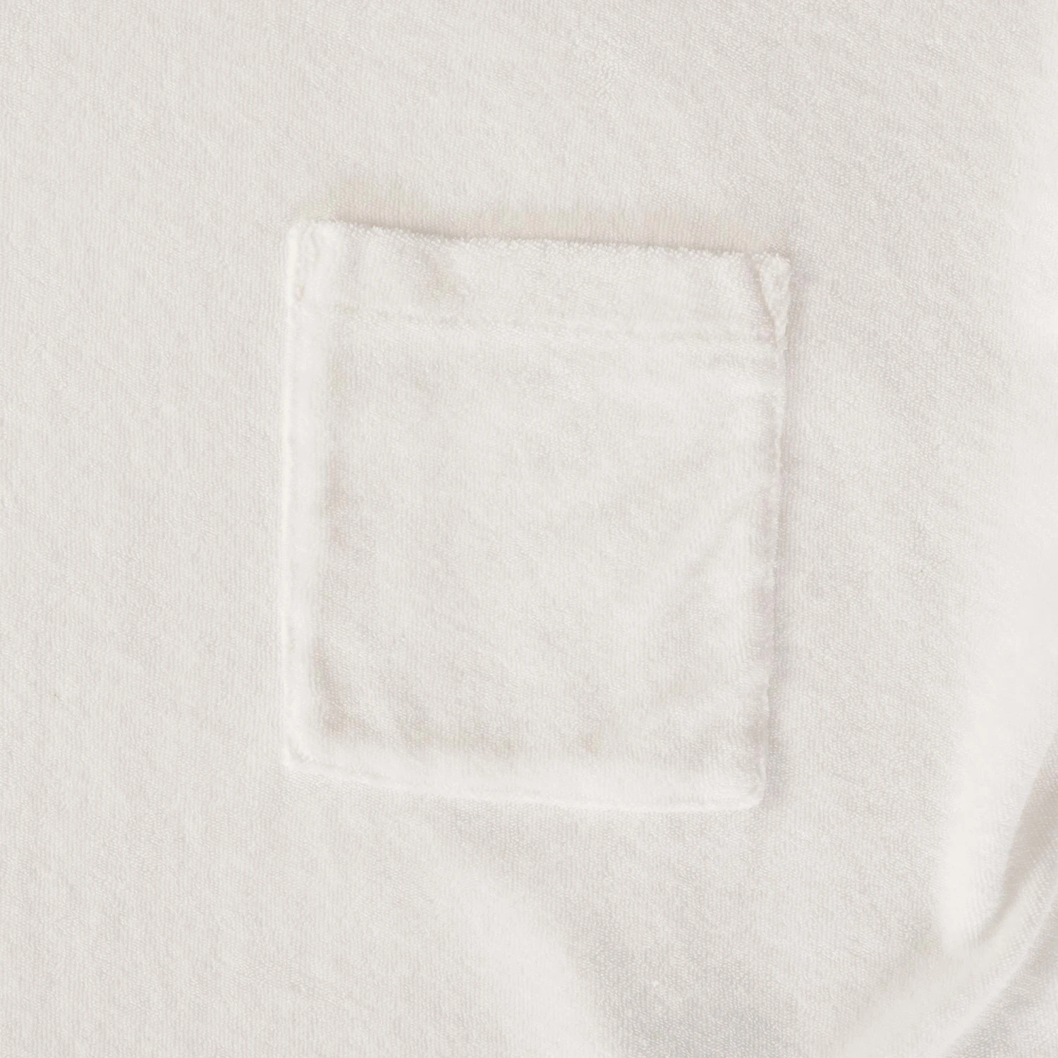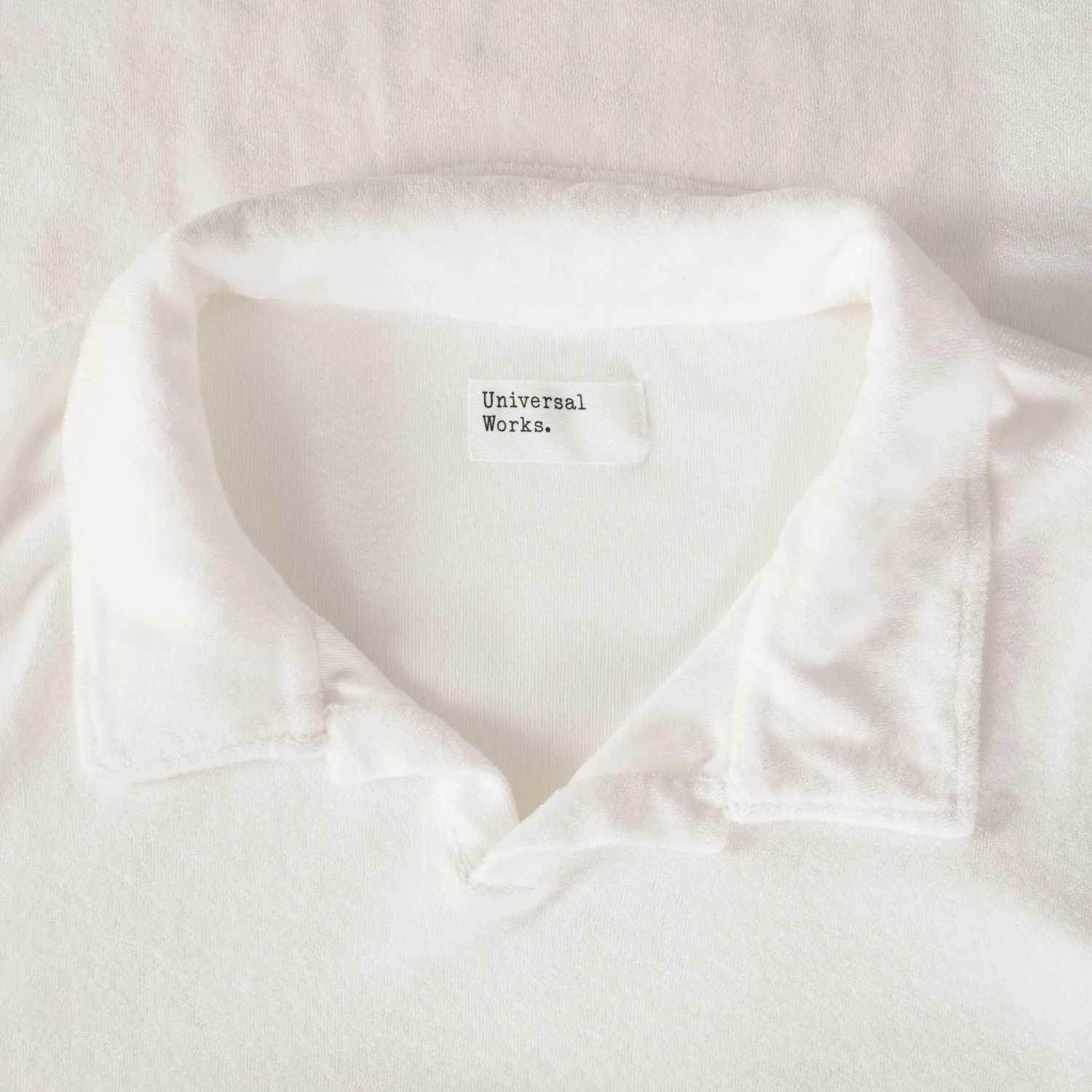 Wear this Universal Works vacation tee on your days off. It comes in a Ecru colour and is fashioned with an open collar for a casual vibe, as well as a little pocket at the chest and is a towelling fabric.