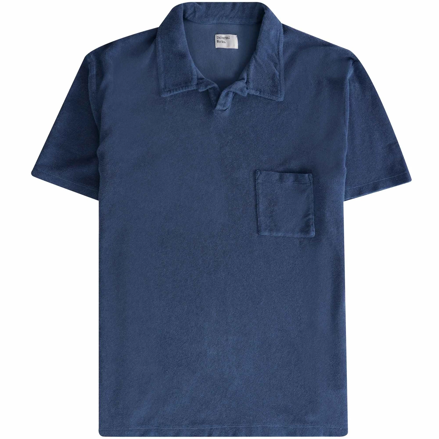 Wear this Universal Works vacation tee on your days off. It comes in a Blue colour in a towelling fabric and is fashioned with an open collar for a casual vibe, as well as a little pocket at the chest.