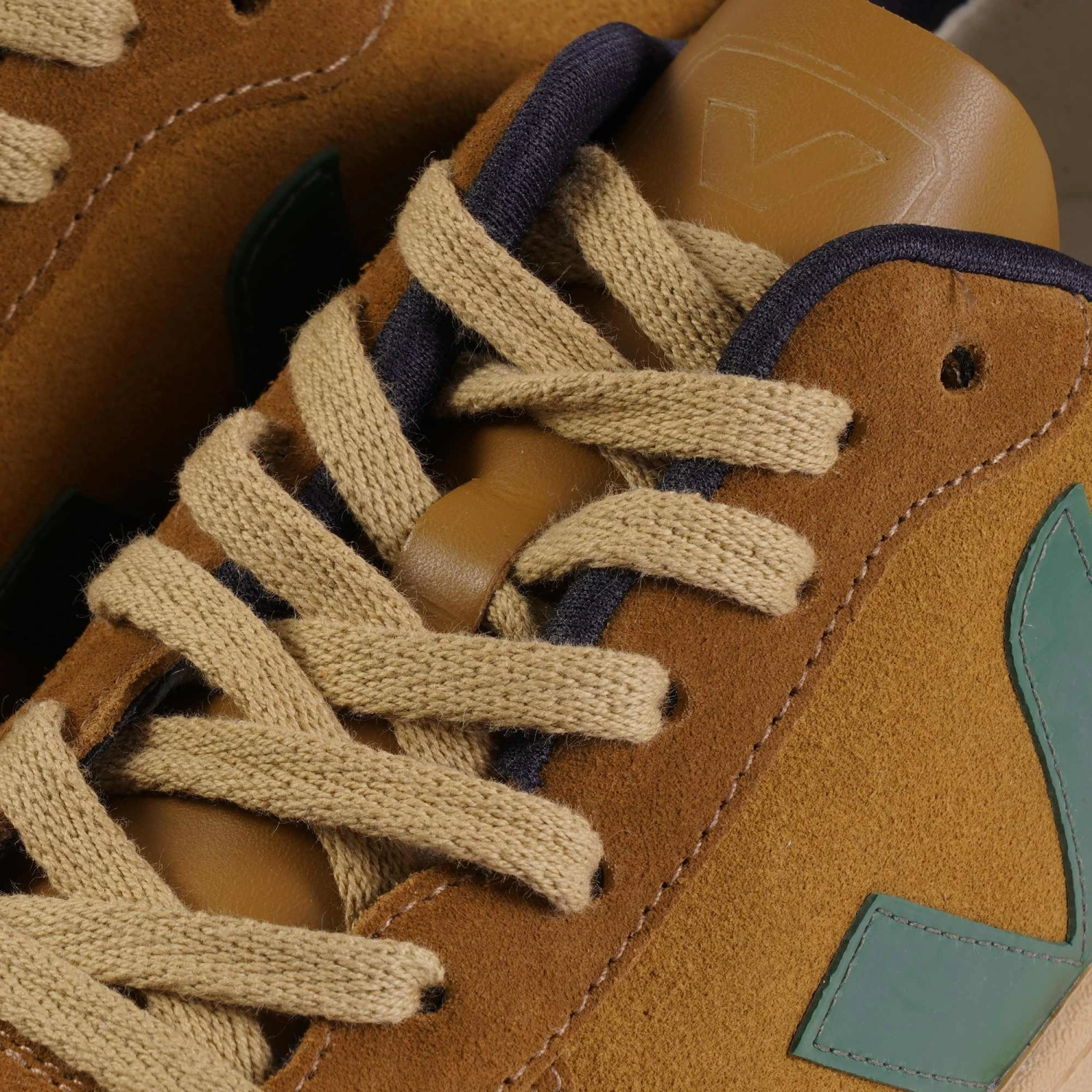 The suede is made from the underside of bovine leather previously brushed to make it softer and more flexible. It comes from farms in the south of Brazil (Rio Grande do Sul). It is tanned in Brazil, without using any hazardous or prohibited chemicals. VEJA uses conventional dyes that comply with regulations. Special attention is paid to water usage during the tanning process. The suede is also coated with water-repellent oils without PFCs (chemical compounds) to protect the sneakers from light rain. The suede is certified Silver by the Leather Working Group.